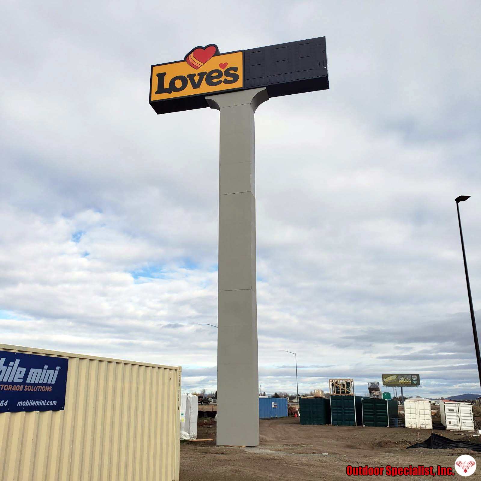 Outdoor Specialist, Inc. is your best choice when you need digital billboards or retail signage along a freeway corridor. Our team has decades of experience in designing, fabricating and installing retail signage in freeway corridors. The image gallery below shows several examples and views of Love’s Travel Stop signs by Outdoor Specialist, Inc.
